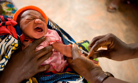 A child is vaccinated against tuberculosis in Benin. Photograph: Olivier Asselin/Alamy